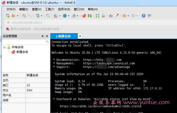 xshell怎么连接腾讯云服务器?现在很多企业使用云服务器,极大的方便了网络业务开展,云服务器的连接有很多种方式,xshell 就是其中一种。如果我们使用Linux系统的时候有些网友不知道如何登入。毕竟我们大部分网友可能不是特别熟悉Linux系统,而且服务器中用Linux系统都是没有界面的,确实有些困扰。云服务器网(yuntue.com)小编这里以手头有的一台腾讯云服务器举例子,如何将腾讯云服务器LINUX系统用xshell远程连接操作服务器。
