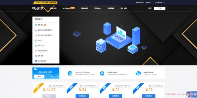 快云科技产品特色:香港高速CN2 GIA服务器,国内延迟平均20-50ms,大带宽,建站秒开,采用RIAD10阵列保障数据安全。所有机型配置均20M带宽。平均下载速度2.5/ms , 相比多数其他商家1M 3M 5M带宽还是较有优势的。该商家在硬件配置方面采用E5 2696v2 E5 26969V4等偏中高端硬件大大的提升机器性能和稳定性。