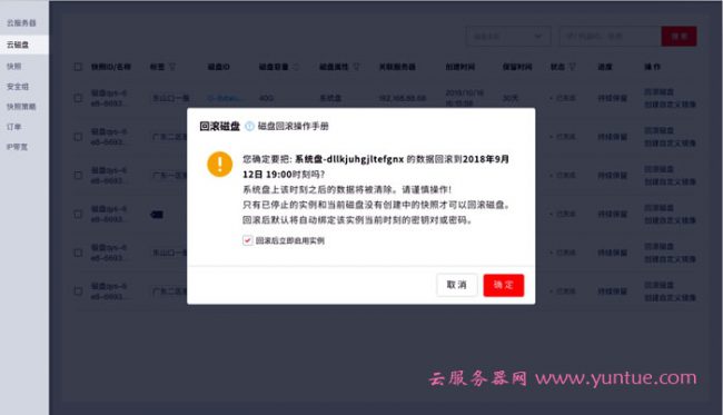 基于创建的“磁盘快照”进行数据回滚的操作截图: