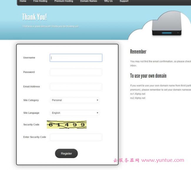 一、申请免费空间。网址:http://www.xlphp.net/signup.php (看清楚,这不是首页)