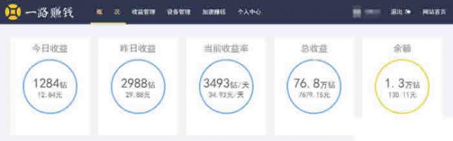 开启客户端后,会产生收益。后台的收益单位为钻,¥1元 = 100钻。满十元可以提现,高端显卡的日收益更是高达30元.