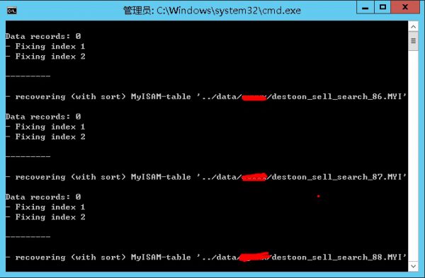 然后myisamchk 工具会帮助你恢复数据表的索引。重新启动mysql,问题解决。