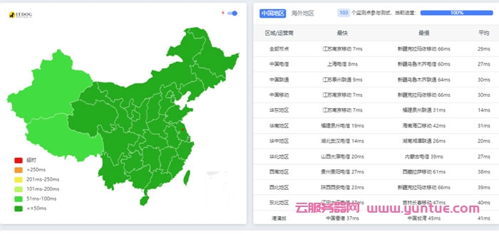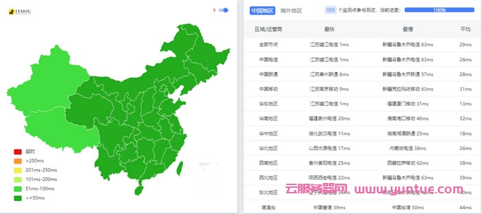 全国ping和tcpping延迟都非常低,非常适合建站业务。