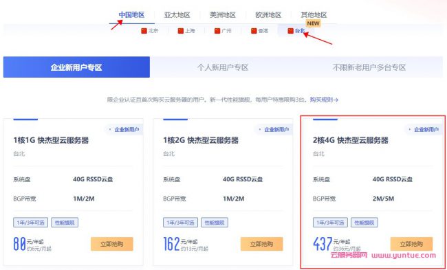 比如,上面我们可以看到台湾台北2核4G 2M/5M可选带宽快杰型云服务器,企业购买仅437元/年,个人购买481元/年。而香港同样配置的价格,企业购买为485元/年,个人购买为534元/年,对比价格比香港云服务器更具有性价比优势。美国华盛顿2核4G云服务器2M/5M/10M带宽可选价格为484元/年,韩国2核4G云服务器2M/5M/10M带宽可选价格是524元/年。所以三个地区对比下来台湾地区则更有性价比。<<详情购买可进入了解