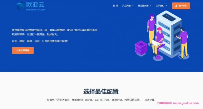 欧亚云怎么样?欧亚云是一家国内的商家,已经拿到ISP\ICP,并且已经递交申请欧亚云商标。欧亚云提供简单易用的管理控制台,统一简化运维管理,使用户面对丰富的操作系统和应用软件,可进行一键开通,轻松省力。安全、稳定、高速、自由,以及更优质的客户服务!