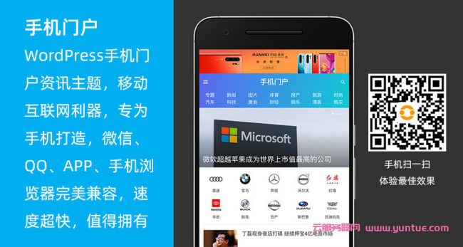如果您的用户大部分来自手机微信(公众号、分享、转发等)、手机微博、手机APP、手机浏览器,那么这款手机门户wordpress主题将会非常适合您,这是一款专门用来搭建手机门户网站、提升手机浏览体验的专业手机门户主题。