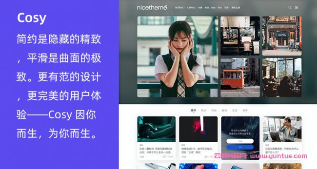 Cosy主题是一款网格布局为主的博客主题,内置多种高级功能。非常适合做个性化生活、照片展示的个人博客,多达6种展现样式,文章、视频、相册、图片等都可以得到淋漓尽致的展示!简约是隐藏的精致,平滑是曲面的极致。更有范的设计,更完美的用户体验——Cosy 因你而生,为你而生。