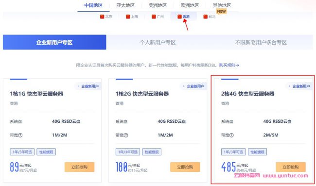 这里推荐企业用户购买Ucloud香港服务器,个人用户相对会贵一些,企业用户区域云服务器限企业认证且首次购买云服务器的用户。新一代性能旗舰,每用户特惠限购3台。