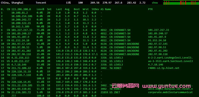 - 25 202.97.90.30 269.77 ms AS4134 China Shanghai ChinaTelecom
