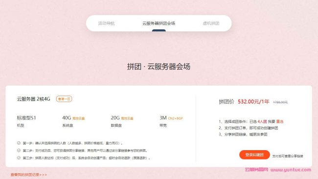 硅云拼团服务器活动在2020年双11的时候就开始了,不过来原的机房有二款,1核1G和2核2G配置,不过目前硅云下架了这二个配置的拼团活动,上线了香港2核4G3M云服务器拼团活动,4人拼团低至532元/年,2个即可拼团!