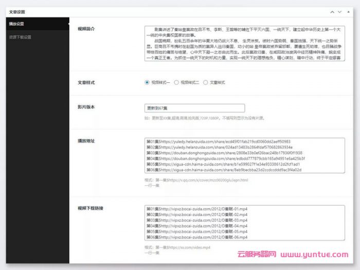 - 可以自定义设置视频解析地址,默认缩略图、去除分类category、上传文件重命名、禁用Gutenberg编辑器等功能