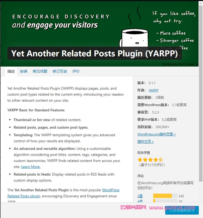 首先,就是先装这个插件,后台直接搜索“Yet Another Related Posts Plugin”