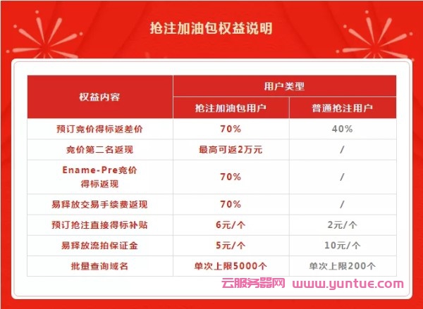 享预订竞价得标差价70%高额返还,同时,第二名竞价返现最高可返2万元,域名批量查询单次上限5000个……