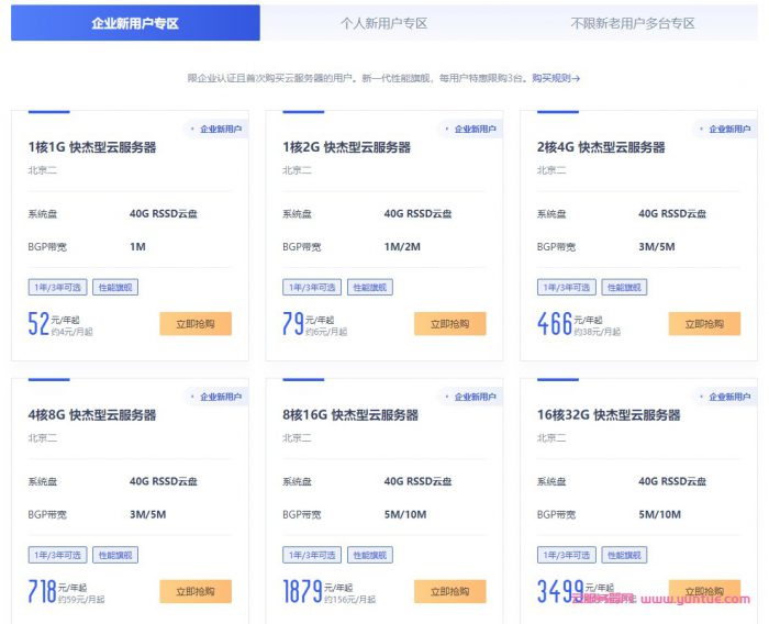 8. 用户参加本活动购买的产品,不允许降配,也不支持先升级再降配;配置升级和续费按官网正常购买流程执行(1核CPU不支持升配)。