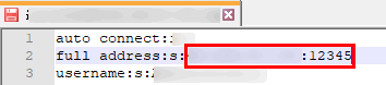说明:如果您使用 RDP 文件登录 Windows 云服务器,请先修改 RDP 文件中的 full address:s 参数。如下图所示: