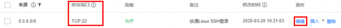 说明:在修改 Linux 云服务器默认远程端口前,建议您先添加 SSH 端口号,并测试新的端口号可以成功连接云服务器,再删除默认的22端口。避免新的端口号无法连接时,仍可使用默认的22端口连接云服务器。如下操作以 CentOS 7.3 操作系统为例,由于操作系统版本和语言不同,详细操作步骤略有区别。