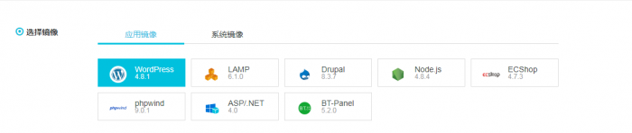 可能最复杂的,还是部署运行环境吧,一般来说,不是运维或者开发人员,都搞不定。为了解决这个问题,轻量应用服务器也借鉴了ECS使用云市场镜像的功能,精选了一些特别优秀的镜像提供给用户,可以满足多种需求,甚至可以达到30秒一键应用启动,主要分为系统镜像和应用镜像两种: