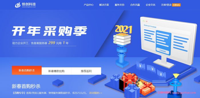 2021恒创科技开年采购季活动开启了!恒创科技继阿里云、腾讯云、华为云之后也开启了开年采购季活动,相对而言腾讯云的优惠折扣是比较大的。这里我们看到老牌海外云商家-恒创科技也发布了该活动,其中最吸引我们的便是香港和美国的云服务器,价格低至299元/年起。