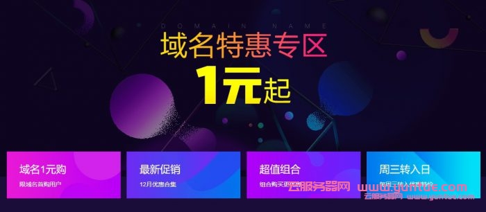阿里云域名特惠专区汇聚了阿里云域名优惠大全,域名注册优惠促销1元起。阿里云热门顶级域名1元起,适合于企业、个人域名注册;云服务器突发性能型t6仅86元起(阿里云上云采购季活动),2核4G云服务器更是低至282/年;商标注册首购低至270元/件起。