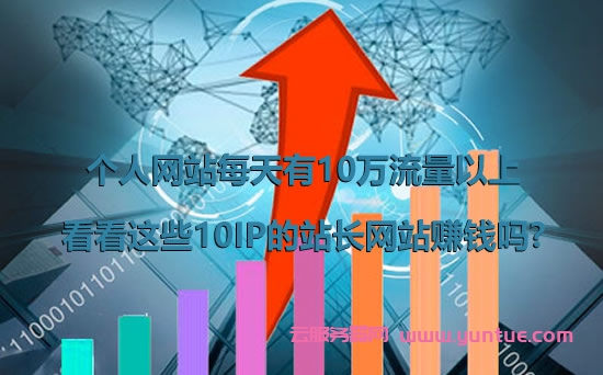 云服务器网(yuntue.com)小编看到很多网站流量不错,但一直没盈利,后来思索了很久,根本不是缺流量,而是缺少一个模式和体系。下面,我们来了解一下一个网站达到10万ip能赚多少钱吧!