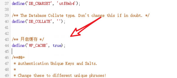 最后,在网站根目录下的wp-config.php中添加如下语句开启缓存