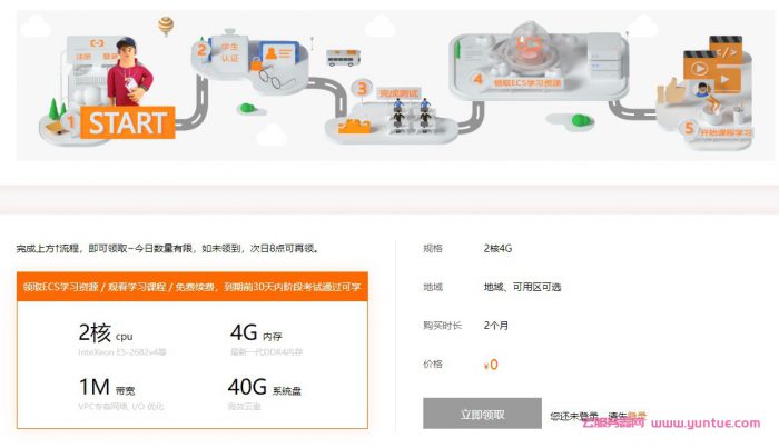 阿里云学生机免费领取攻略:阿里云学生机配置为 2H4G1M 40G 云盘 2 个月 0 元,此为 ECS 突发性云服务器,会限制 CPU 性能,此机器适合短途临时使用,2 个月到期后续费很贵,不划算,个人自主选择吧,白嫖 2 月也不错。