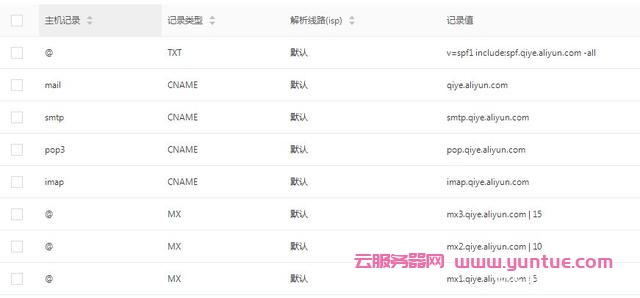 第五步、域名解析绑定邮箱申请成功之后需要把域名解析到阿里云免费版企业邮箱指定的地址上面来,阿里云免费版企业邮箱解析地址如下: