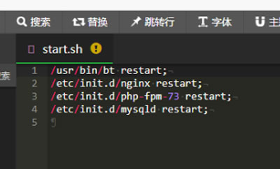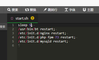 我们可以创建一个脚本文件,在docer的容器在启动的时候,执行一次宝塔重启、web服务器重启、mysql重启、如果还有其他的需要可以一并添加,我这里使用通的web服务器是nginx、mysql、php,所以我在系统根目录创建了stat.sh的文件,里面的内容如下: