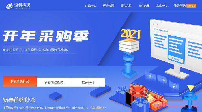恒创科技怎么样,恒创科技是香港sondercloud limited旗下的老牌IDC品牌,主营中国香港、美国、日本、韩国等地骨干级机房优质资源,三网直连,CN2 GIA高速回国,全球BGP网络,以稳定的网络质量吸引众多开发者和企业选择。这次恒创科技2021年开年采购季活动,推出香港服务器、美国服务器首购秒杀活动,云服务器首购仅299元/年。