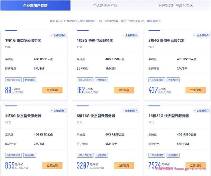 1、1核1G 快杰型台湾云服务器 40G系统盘 BGP带宽1M/2M,企业价格:80元/年,个人价格:121元/年  <<点击选购