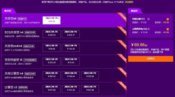 阿里云服务器是国内云产品市场中相当有竞争力的了,从技术、稳定性、速度方面都稳居榜首。阿里云在搞活动的时候,往往针对新用户,不支持老用户使用。人送外号“套路云”。目前,阿里云新用户可以享受“阿里云开年采购季 1核2G1M仅69.86元/年”活动的优惠。