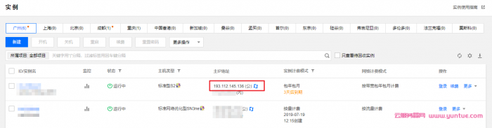 在实例的管理页面,找到运行中的云服务器实例,并复制该云服务器实例的公网 IP。例如,需启动实例的公网 IP 为193.112.145.136,则只需复制该实例的公网 IP 即可。如下图所示: