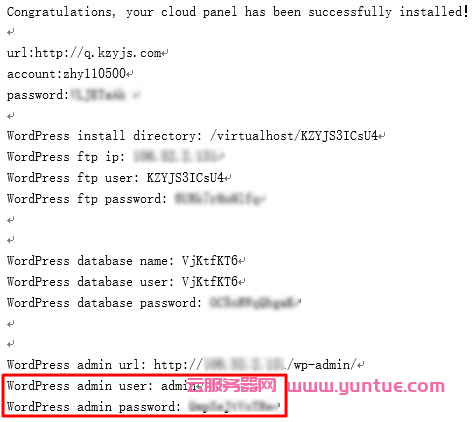 打开文档,获取 WordPress 网站的管理员登录账号和密码。如下图所示: