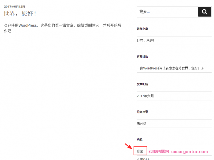 刷新引导页面,出现 WordPress 的欢迎页面,即表示 WordPress 网站启动成功。