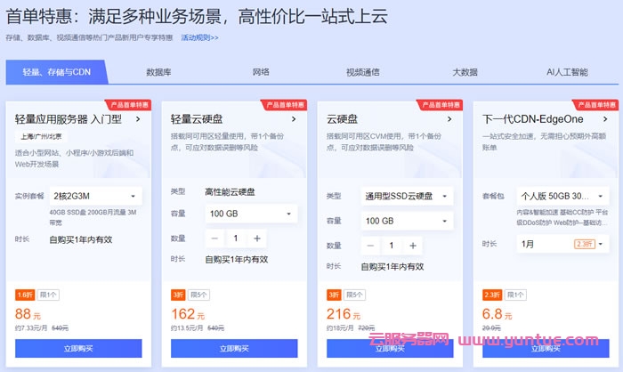 高性价比一站式上云,存储、数据库、视频通信等热门产品新用户专享特惠