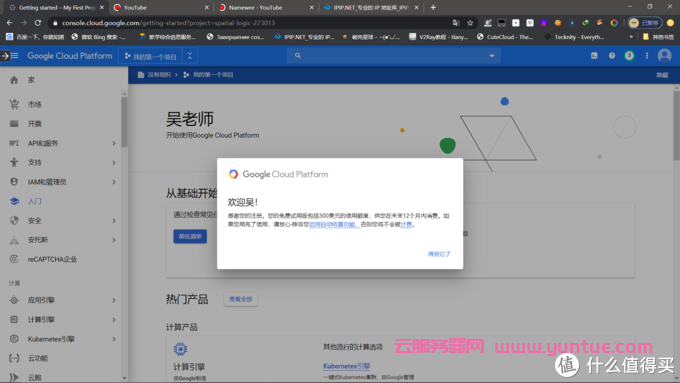 信用卡通过验证后就可以尽情享用谷歌云免费的300刀,有一年的使用期限!!!