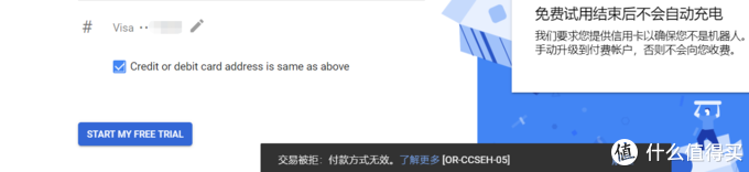 然后又是卡了无数人的信用卡部份了,看过很多评论说什么国内信用卡是过不了的,然后什么什么信用卡没法用,所以我注册时也是很担心的,在第一次填写信用卡时它也是提示我这张卡无效: