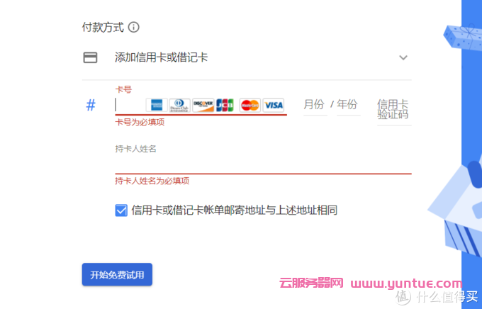 在捣腾服务器时突然想起谷歌云对于新人有免费的300刀试用,之前一直心心念念,但奈何还是个学生没有外币信用卡,所以一直没打它的注意,这阵子刚好在家没事干突然记起来,于是跟家里人借了张visa信用卡申请过了,实在是太开心了,但在申请过程也遇到很多困难,所以特此记录一下让大家少走些弯路。