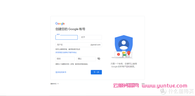 首先,我们还是按常规流程注册,到谷歌注册界面,创建账号,为自己创建进入下面的界面,这里按自己喜欢填写信息,记住谷歌邮箱账户名: