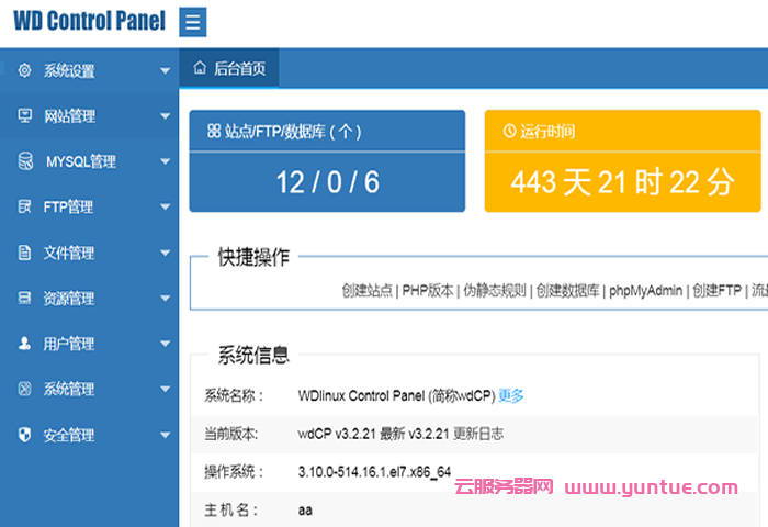 wdcp是一款免费的Linux服务器云主机管理系统,通过wdcp可在线WEB方式轻松管理Linux服务器系统和数据,网站,数据库,FTP,应用配置,应用服务等。1 可一键快速部署lnamp,lamp,lnmp等WEB应用环境,支持tomcat,nodejs等应用;2 支持N+A的组合模式,支持多PHP版本共存和选择切换等;3 站点创建,域名绑定,二级域名,伪静记,HTTPS支持,301跳,404重定向等;4 mysql数据库创建,用户创建与设置;5 FTP帐号的创建与管理;6 系统管理,资源流量,系统日志,IP设置,进程管理,服务管理,端口管理等;7 安全设置,禁PING,SSH端口与密钥设置,selinux设置,Iptable防火墙的增加与设置;8 数据备份,可在线打包文件或目录,站点文件或数据库;9 计划任务,可创建与自定义一些定时定期执行的任务或程序;10 文件管理器,在线编辑,文件下载,移动,打包,远程下载等。