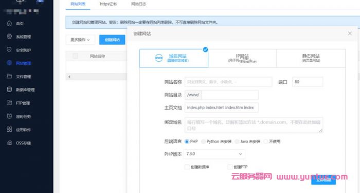 新建站点分为3种:域名建站、IP建站、静态网站,看图: