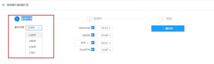 2)进入后台后,安装web环境,可以选择lnmp、lomp等。