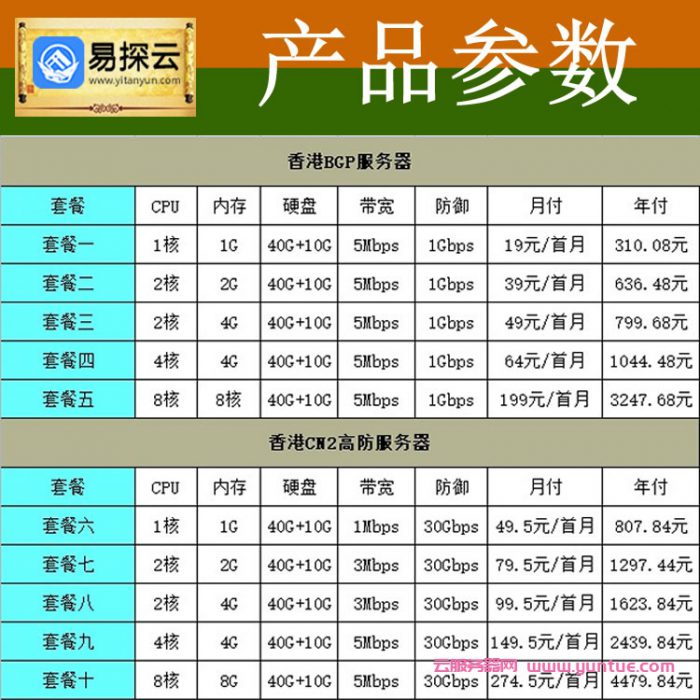 二、易探云香港BGP/CN2线路服务器优惠价格