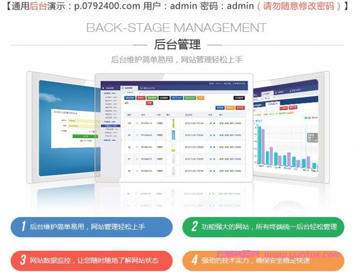 一套程序模板,同一个后台管理三网合一简单方便,体验极佳。