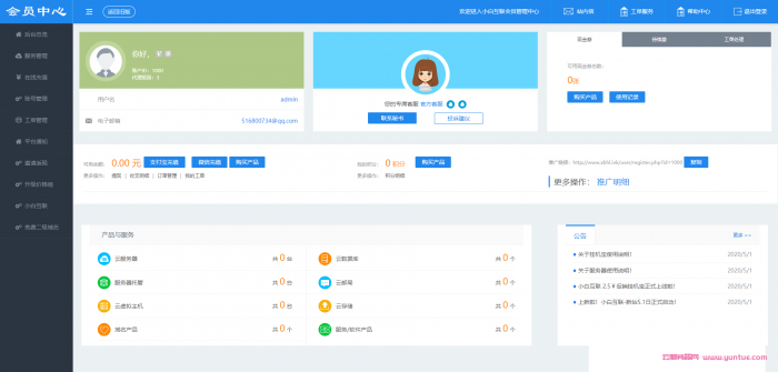 云塔idc模板(YunTaIDC)Template 02,是一套仿小鸟云会员中心美化版模板,界面风格很美、基本上和鸟云差不多操作界面风格,所以你觉得用户已经习惯使用鸟云的会员后台界面,那么使用该模板是最好的!