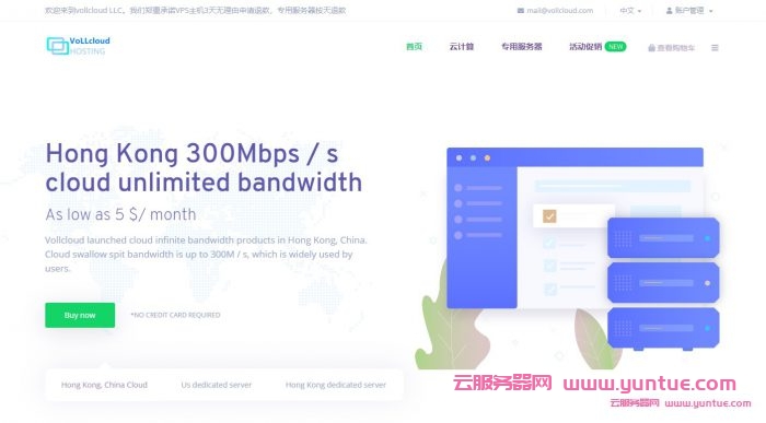 VoLLcloud:香港大带宽云服务器/300Mbps/不限速度,$5/月