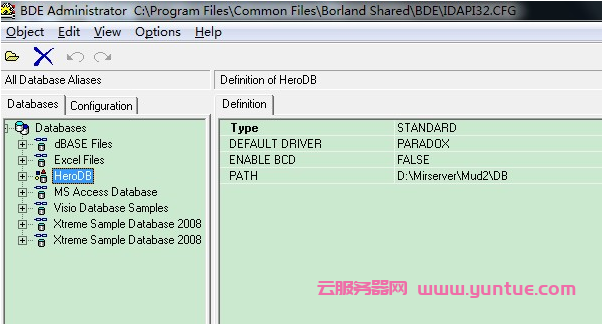 把它改名为HeroDB,选中HeroDB后,会看到右边界面有Path选项,这个地方需要上传传奇服务器端的数据路径。