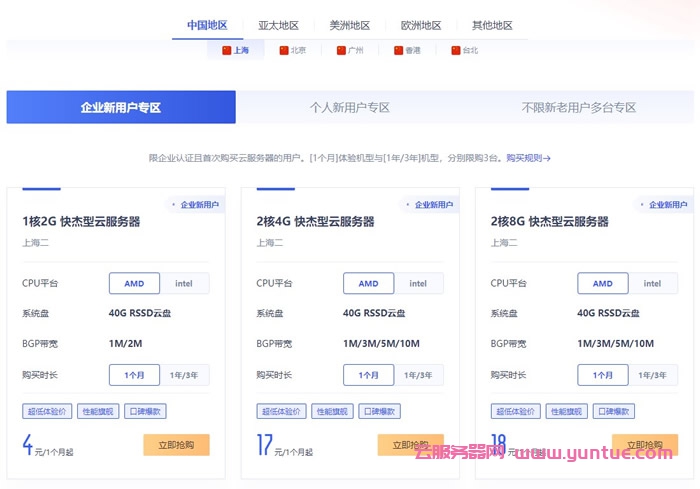 UCloud官方增加了[1个月]体验机型和AMD促销机型,1核2G内存40G RSSD系统盘1M BGP带宽配置,北上广可用区AMD机型首月4元或intel机型首月5元,香港台北可用区AMD机型首月10元或intel机型首月13元。企业新用户[1个月]体验机型与[1年/3年]机型,分别限购3台。个人新用户[1个月]体验机型与[1年/3年]机型,分别限购1台。