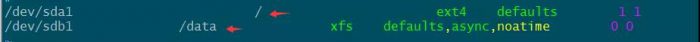 /dev/sdb1 /data xfs defaults,async,noatime 0 0
