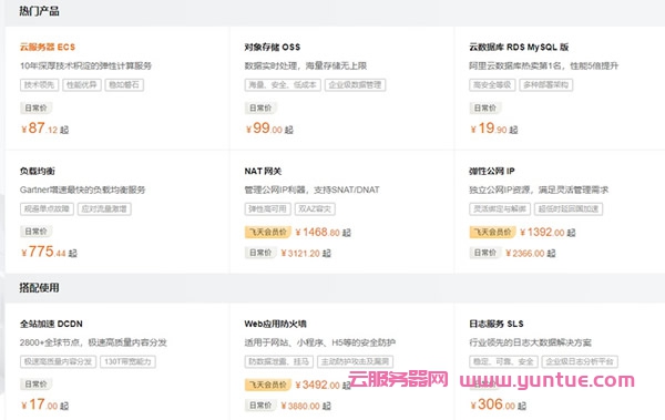 阿里云官网发现,其拥有数百款产品,由于应用场景不同,定价低至几十元,高至几万元。就企业服务中较为常见的上云和建站服务而言,热门产品的定价在19.9元到3121元不等。